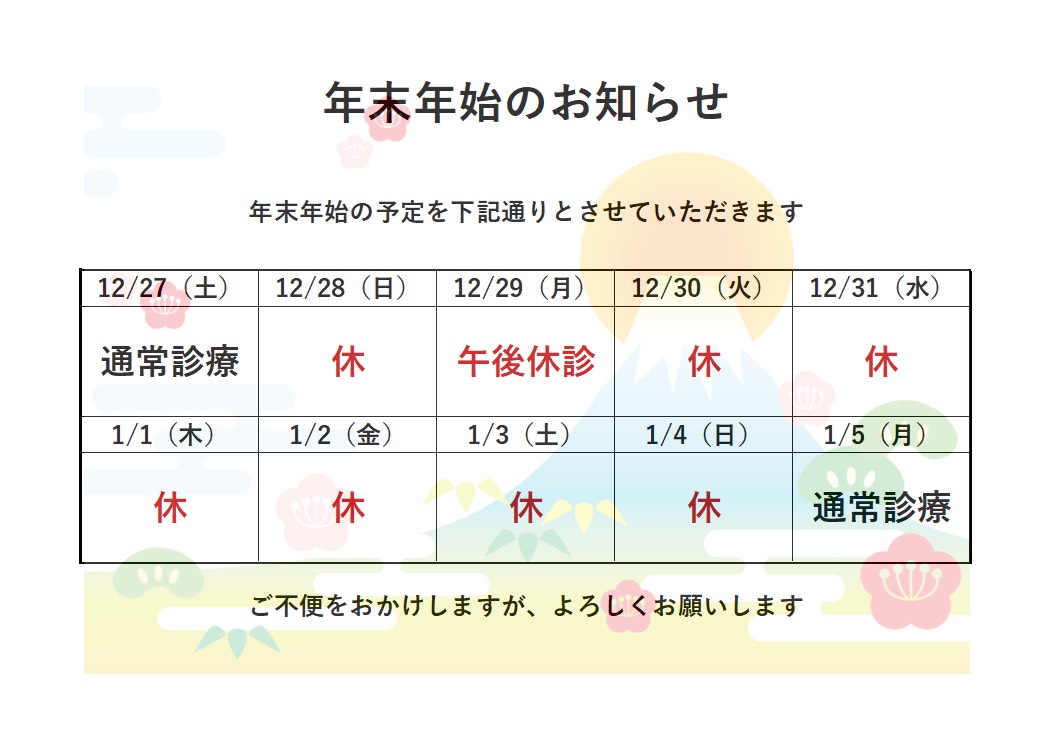 - 年末年始の休診のお知らせ [2025.12.08更新]